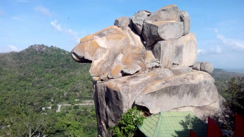 Ngọn núi có độ cao khoảng hơn 706m, sở hữu một tảng đá bia to lớn cao khoảng 80m, có hình thù kỳ lạ đứng từ phía xa mà bạn vẫn có thể nhìn thấy rất rõ. Kỳ lạ là vào lúc sáng sớm hay chiều đến sẽ có những đám mây trắng che phủ xung quanh hình thành nên cảnh vật vô cùng huyền bí, hút mắt.